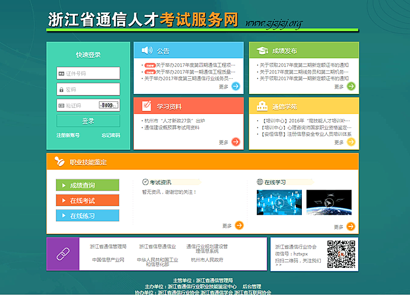 浙江省通信人才考试服务网是杭州沃迩夫信息科技有限公司针对通信行业人才服务研发的在线学习与在线考试系统。主办单位是浙江省通信管理局。